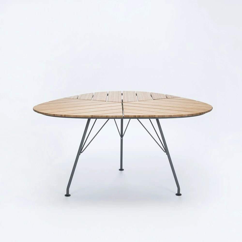 – Leaf shaped, triangular table top with three elegant legs.