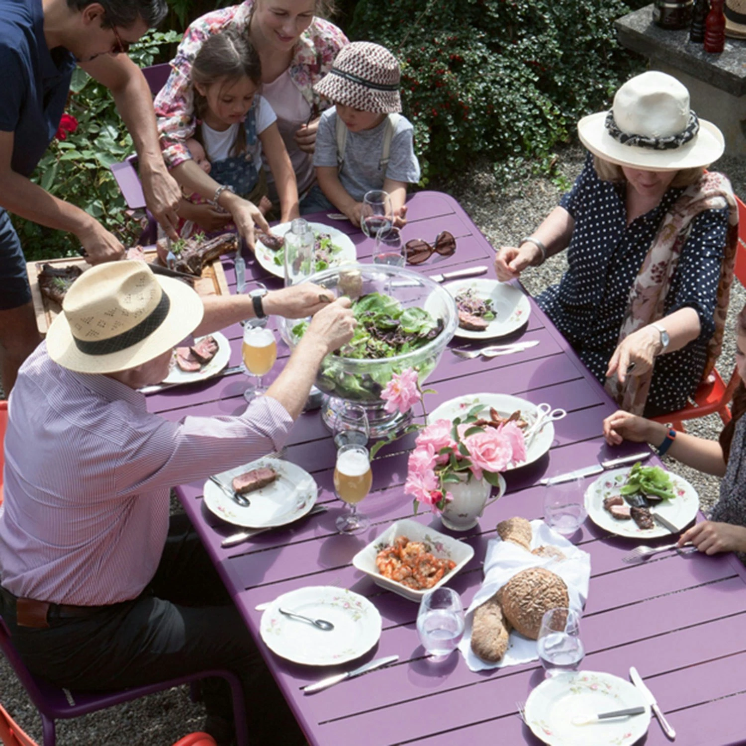 Luxembourg table from Fermob. A generous and spacious table for 8-10 people. The table is made of aluminum which makes it surprisingly easy. It makes it extra easy to move it out in the garden there when it’s time for the garden party or birthday party.